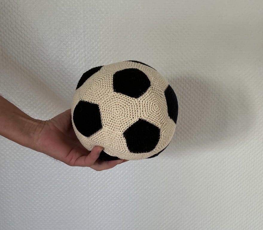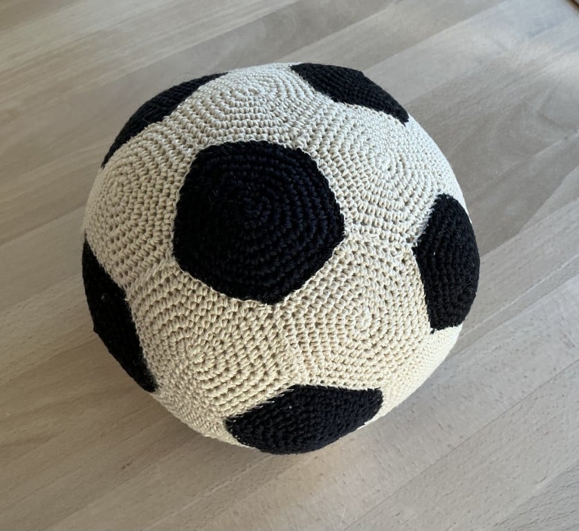 En hæklet fodbold fungerer også genialt som pynt på børneværelset – eller som blødt legetøj, du ikke får huller i væggene af. Win-win.